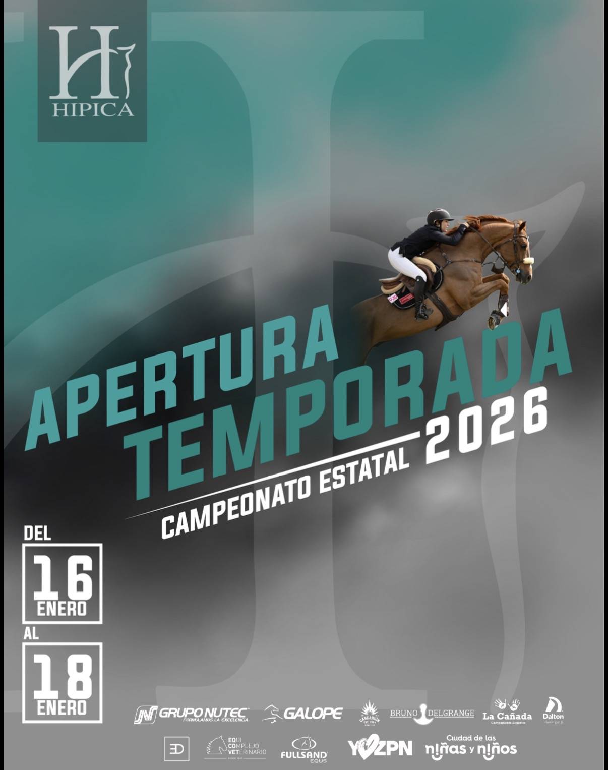 Hípica, invita a todos los Clubes y Agrupaciones afiliados a la FEDERACIÓN ECUESTRE MEXICANA A.C. a participar en el Concurso “Apertura Temporada 2026” dando inicio al Campeonato Estatal AEJ que se llevara acabo del 16 al 18 de Enero del 2026.