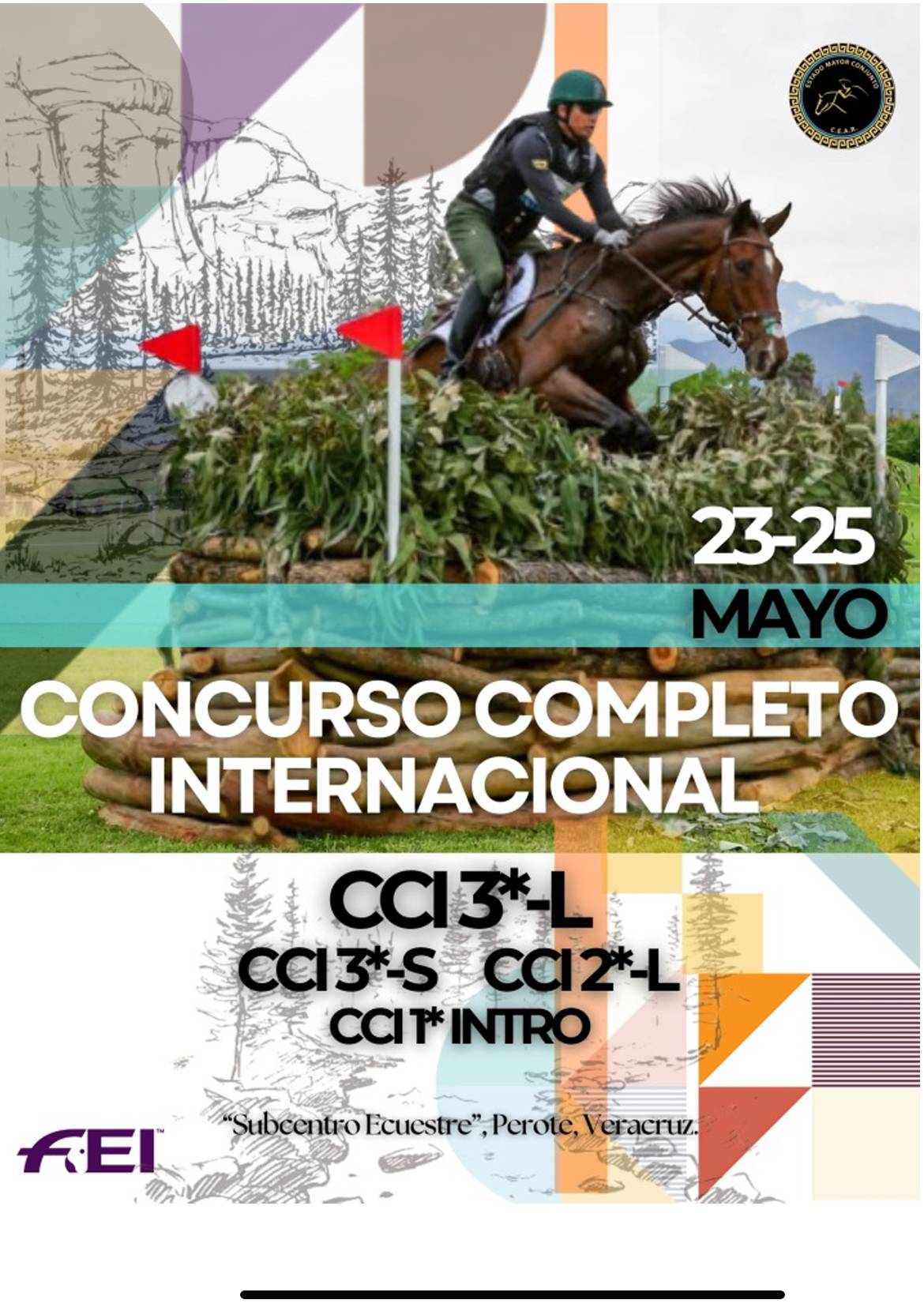 El Centro Ecuestre de Alto Rendimiento de la Secretaria de la Defensa Nacional y el comité de concurso completo de la Federación Ecuestre Mexicana invita a todos los jinetes federados a su CONCURSO COMPLETO INTERNACIONAL CC13*-S, CCI2*-L y CCI1*. C.E.A.R. PEROTE, este evento se llevará acabo del 23 al 25 de mayo en las instalaciones del Centro Ecuestre de Alto Rendimiento S.D.N. Perote, Veracruz.